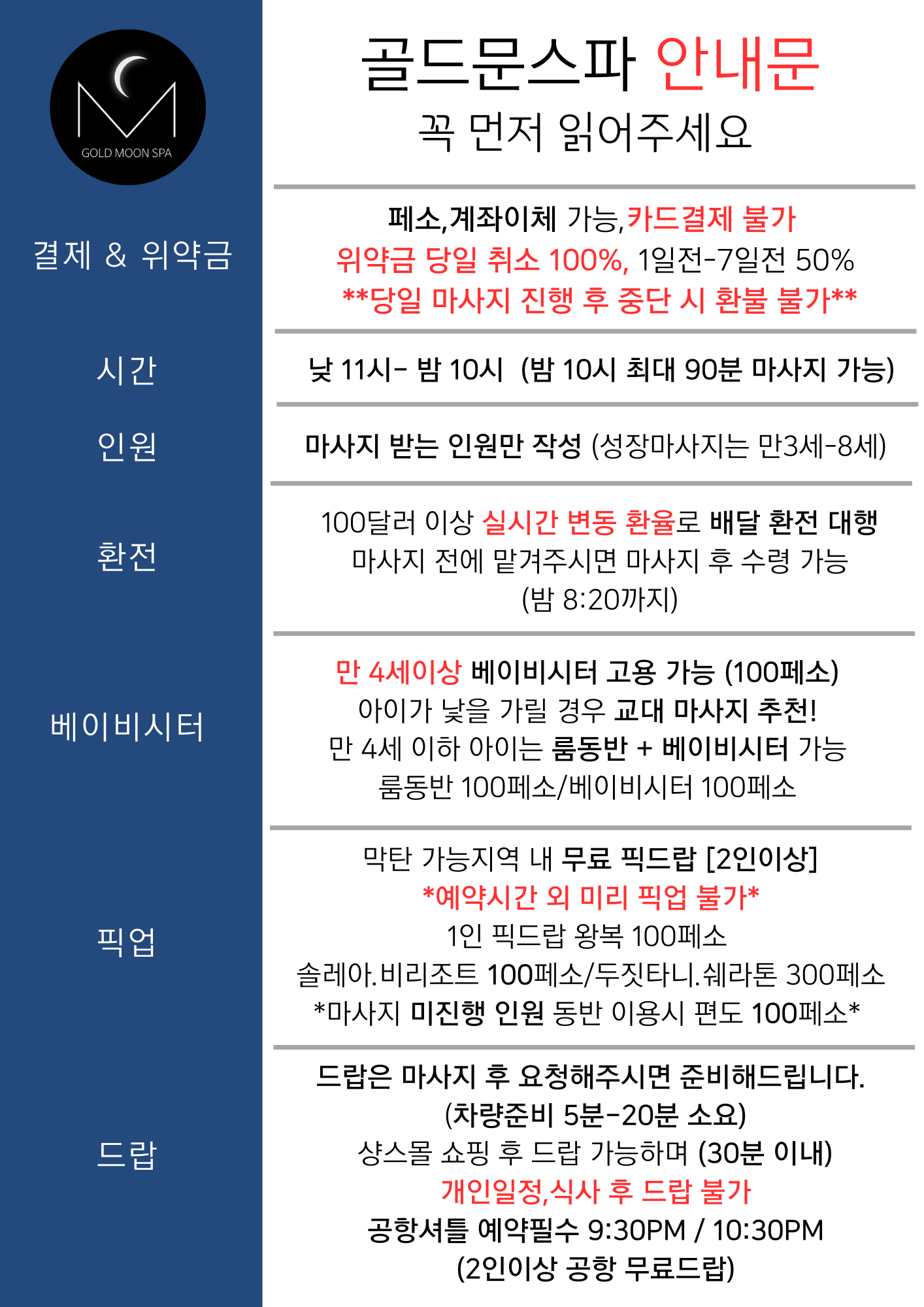 만8세이하 아동은 현장에서 마사지 선택 후 현장결제입니다.
